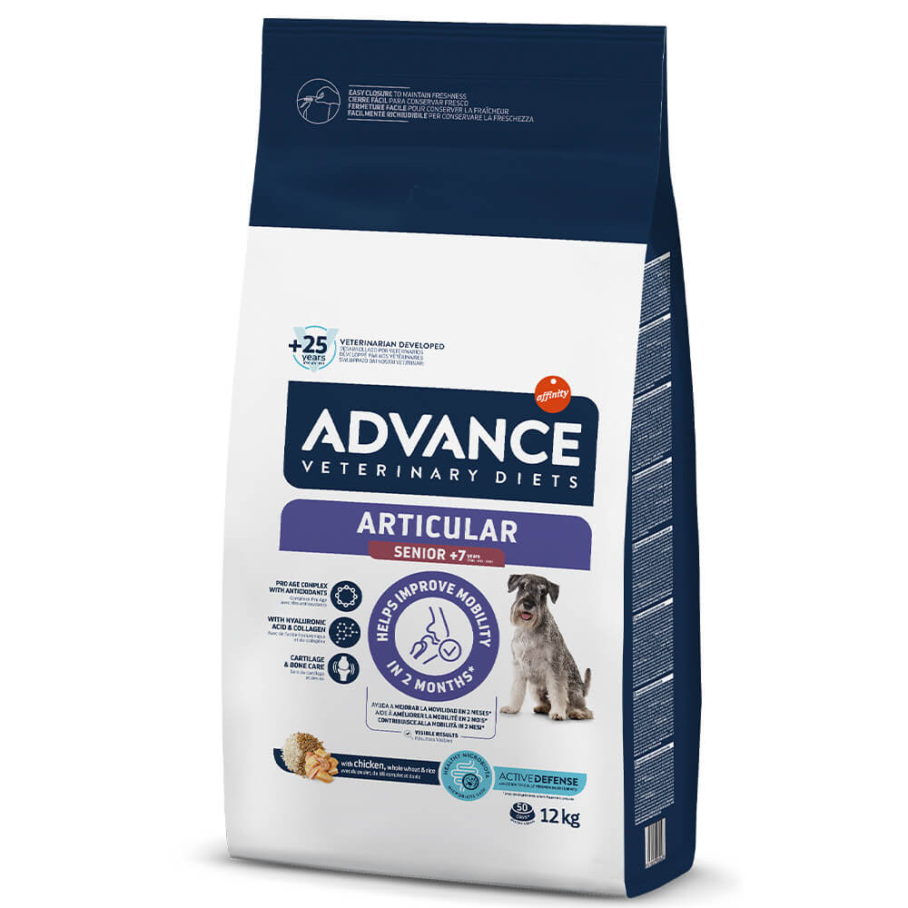 Advance Veterinary Diets Articular Senior é um alimento completo e equilibrado, formulado para a recuperação e o apoio nutricional no cuidado das articulações dos cães seniores a partir dos 6 anos, de acordo com o porte (grande +6 anos, médio +7 anos, pequeno +8 anos).