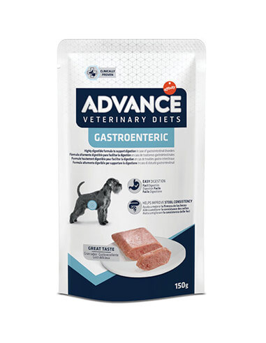 Advance Gastroenteric Veterinary Diets é um alimento dietético para cachorros a partir das 14 semanas e cães adultos, alivia problemas agudos de absorção intestinal, ingredientes muito digeríveis, para uma flora equilibrada, com prebióticos.