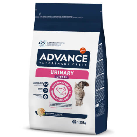 Advance Urinary Stress é um alimento seco para gato adulto, indicado em patologias associadas à doença do sistema urinário. Ajuda a reduzir o stress, a proteger a barreira urinária e a reduzir a formação de cristais urinários.