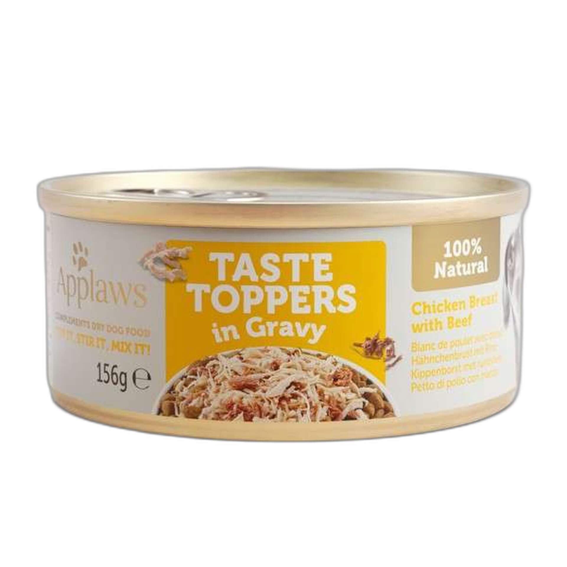 Deleite o seu amigo de quatro patas com os irresistíveis condimentos Applaws Taste Toppers com Frango e Carne Bovina em molho! Estes deliciosos complementos são perfeitos para realçar o sabor e a textura da comida diária do seu cão, adicionando variedade e excitação à sua dieta.