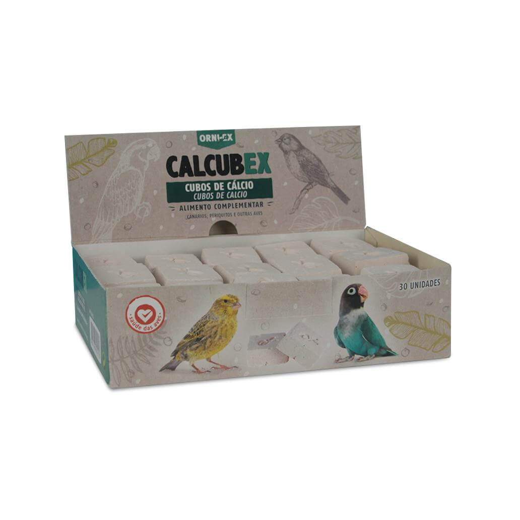 Cubos de cálcio para bicos duros com arame para atar na grade da gaiola.