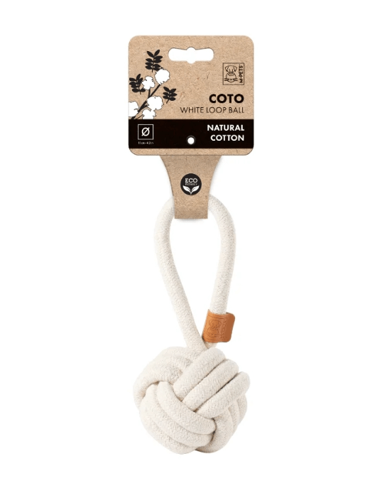 As cordas M-PETS® COTO são feitas de algodão natural de alta qualidade, um material durável e ecológico que é seguro, não tóxico e quase indestrutível. Eles são excelentes para recuperar, cabo de guerra ou simples mastigar. Eles ajudam a promover uma boa saúde, limpar os dentes e melhorar o desenvolvimento mental, evitando que se sintam solitários, estressados ou com pouca energia. Adequado para cães de todas as idades.
