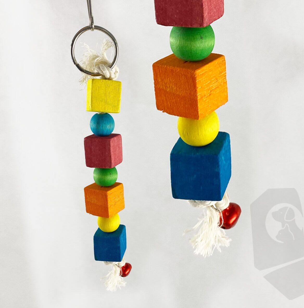 Brinquedo para pássaros com cubos de madeira coloridos, bolas e sino 2x3x21cm