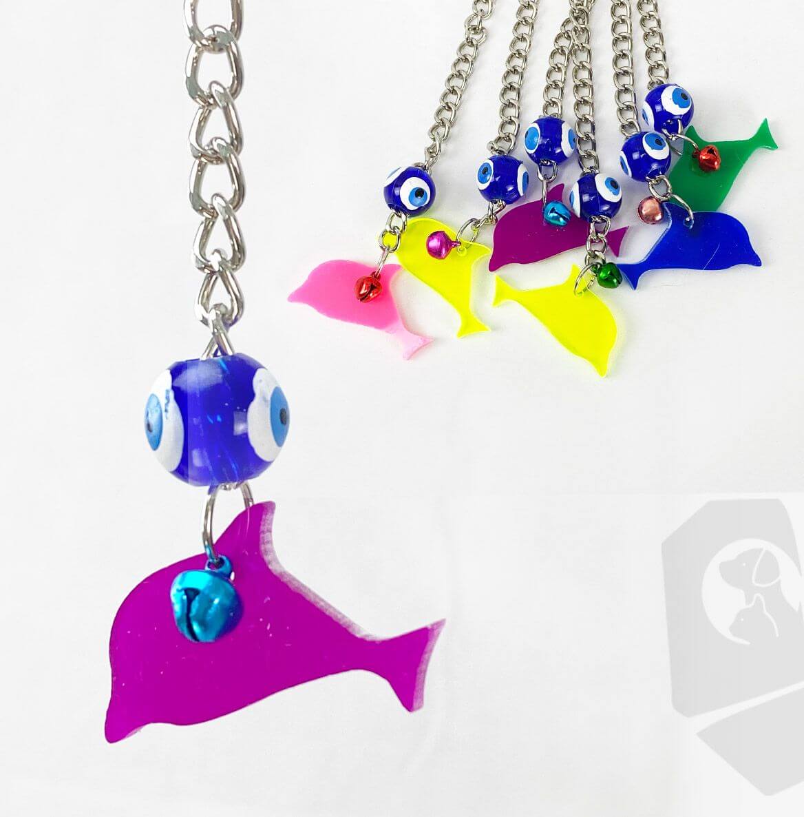Brinquedo de pássaro golfinho feito de várias cores com sino 4x16cm