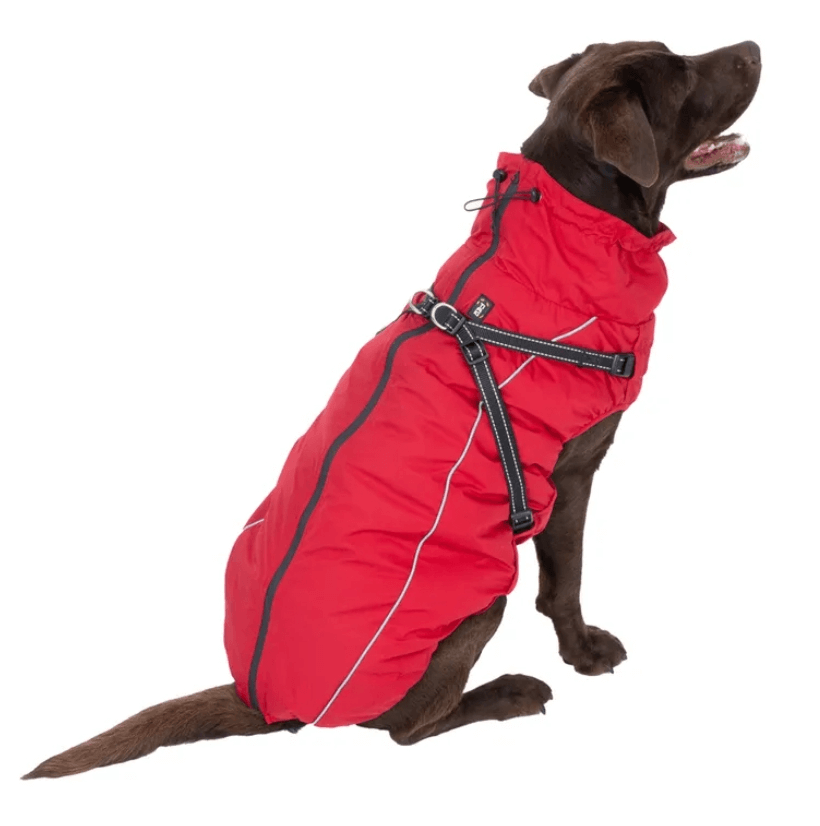 O casaco para cães TIAKI com peitoral Arkon é um casaco prático para cães com peitoral opcional que oferece calor, conforto e estilo em igual medida. O seu material exterior impermeável mantém o seu cão seco durante os passeios, com chuva ligeira ou neve, enquanto o forro polar quente e a gola alta proporcionam uma boa proteção contra o frio.