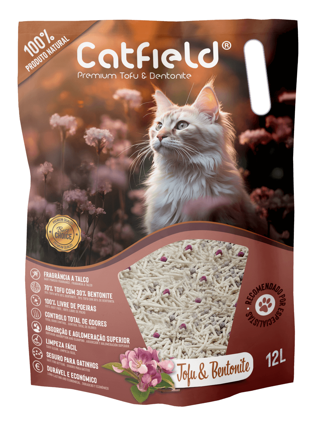 Catfield® Tofu + Bentonite é uma solução ecológica e eficaz para a higiene do seu gato. Com um aroma suave a talco, é 100% biodegradável e respeita tanto a natureza do seu felino quanto o ambiente, promovendo um ambiente doméstico mais saudável e agradável.
