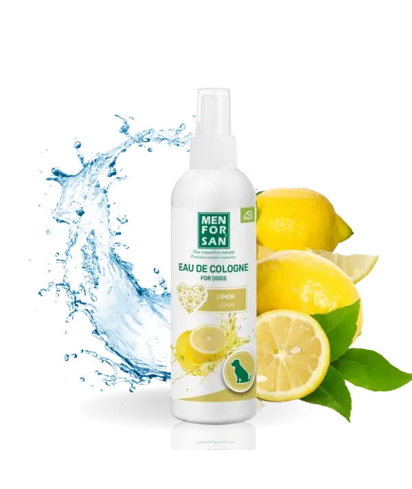 Água de colônia para cães com fragrância LEMON especialmente criada para proporcionar após o banho um cheiro fresco e um efeito desodorante intenso e muito agradável, respeitando a pele e as propriedades olfativas do animal. Não contém álcool e tem um ph neutro sem efeitos irritantes e evitando que o cão espirre após a sua aplicação.