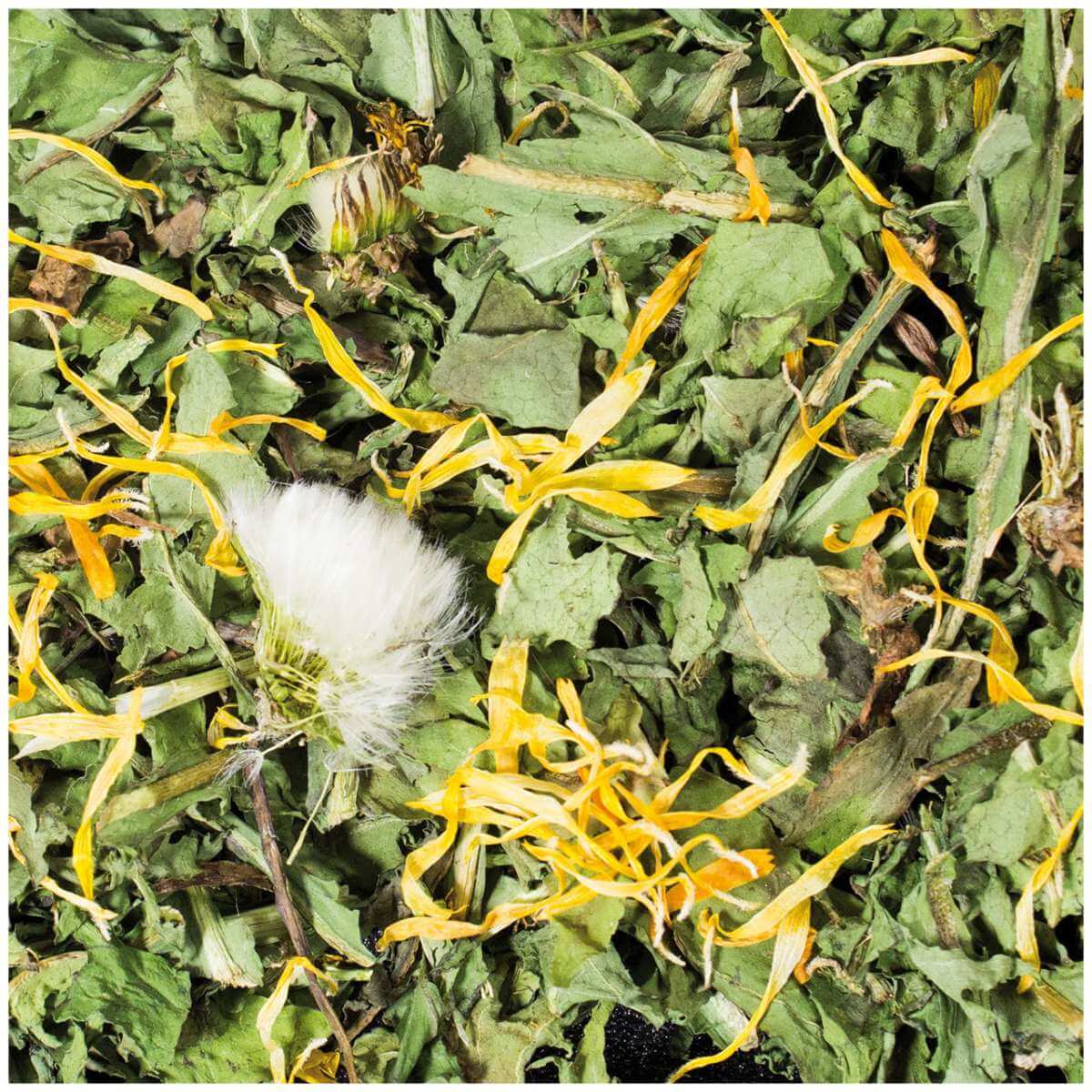 Pura da mão ou misturada com comida, a planta seca e completa do dente-de-leão é um deleite valioso para todos os roedores e coelhos anões. O dente-de-leão contém várias vitaminas, minerais e oligoelementos naturais. Promove o fluxo biliar, o metabolismo e a digestão. Além disso, pode ter um efeito positivo na vitalidade e bem-estar dos animais devido ao seu efeito diurético, drenante e hepatoprotetor.