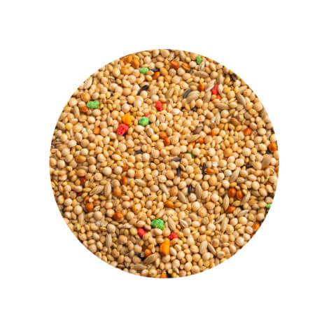 Alimento natural completo para aves exóticas, com base na mistura correta de grãos limpos e selecionados.