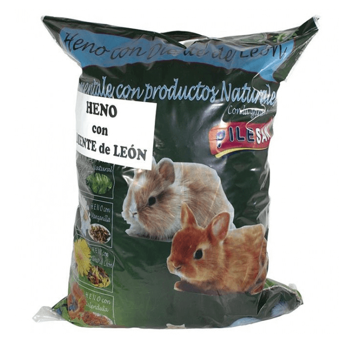 O feno com dente-de-leão é uma opção saborosa e saudável para complementar a dieta diária de coelhos, porquinhos-da-índia, chinchilas e outros pequenos roedores. Este feno não prensado, rico em fibras e totalmente natural é misturado com folhas secas de dente-de-leão, uma planta conhecida por seus benefícios digestivos e efeito de limpeza suave.