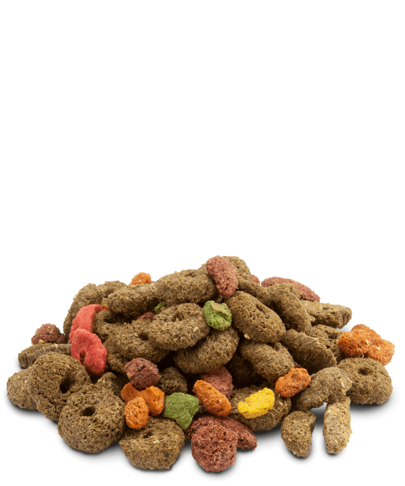 subprodutos de origem vegetal, cereais, extratos de proteínas vegetais, legumes, sementes, substâncias minerais, FOS, ervas, óleos e gorduras