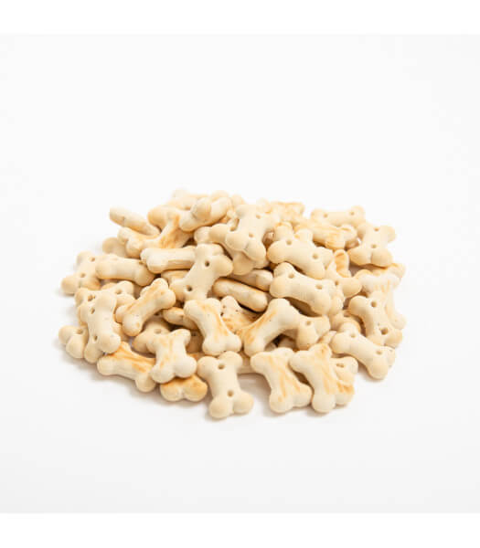 Bolachas em forma de osso com aroma e sabor a maçã.
