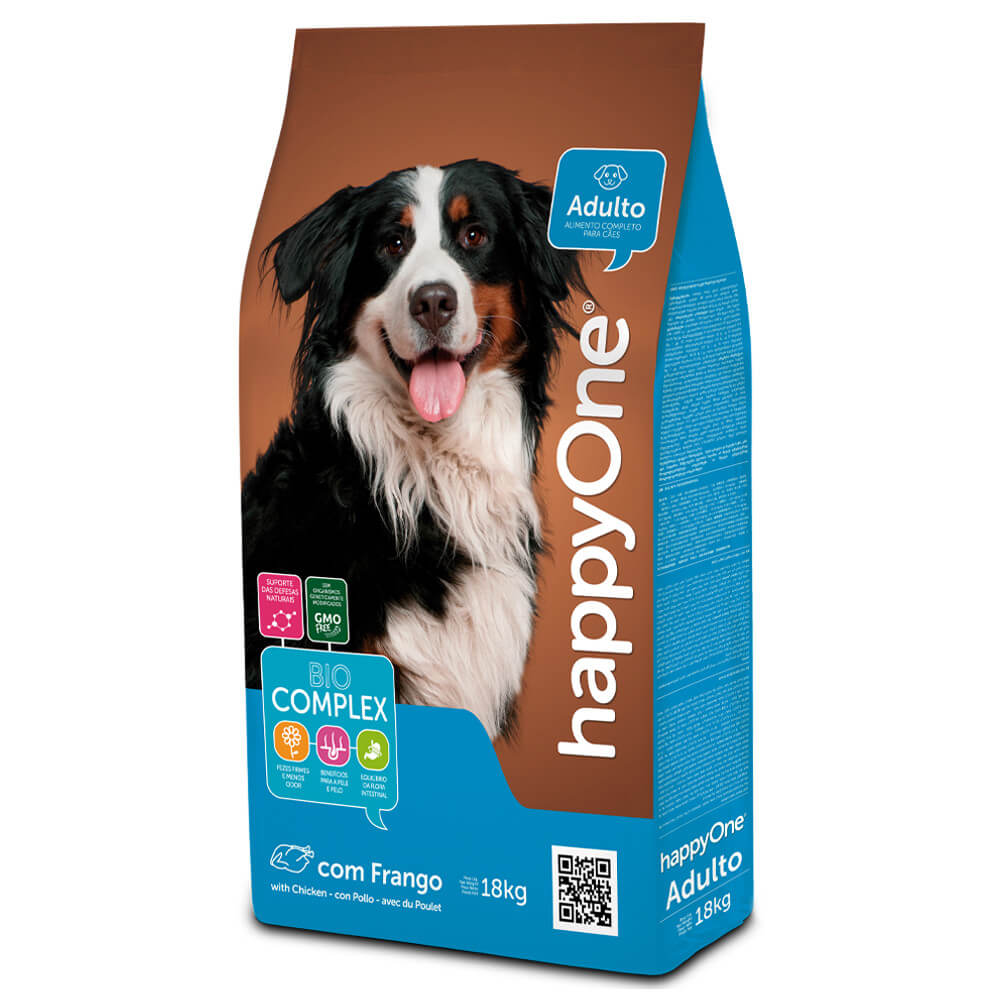 happyOne de Frango para cães adultos é um alimento completo e equilibrado, que ajuda a suportar as defesas naturais dos patudos, graças a um complexo vitamínico mineral completo. Contém yucca schidigera e polpa de beterraba, para uma boa consistência das fezes e com menos odor, e MOS, que promove o equilíbrio da flora intestinal.