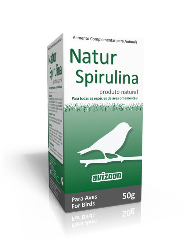 NaturSpirulina em pó, contém 60% de proteína, vitaminas e aminoácidos. Rico em beta-caroteno intensifica a cor natural das penas e melhora a sua estrutura. Por ser uma fonte rica em Vitamina-E NaturSpirulina é ideal na época das criações.