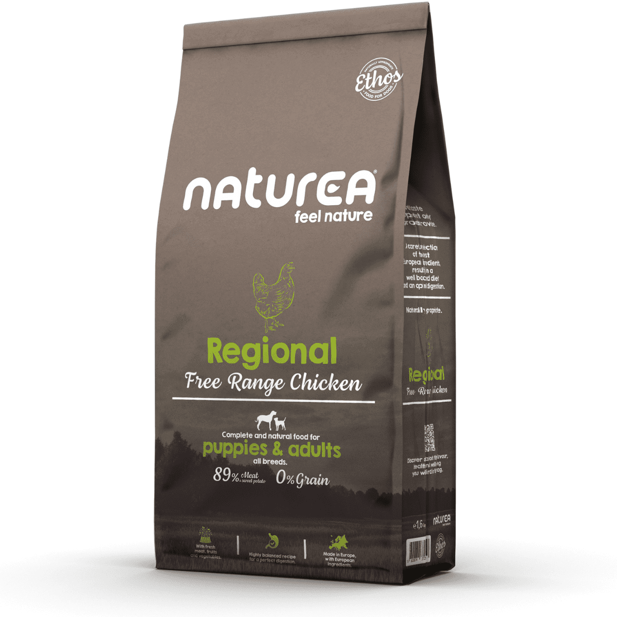 O seu cão é carnívoro e, como tal, os cereais não devem fazer parte da sua alimentação. Naturea Regional segue o conceito Naturalmente Apropriado, e vai ao encontro das necessidades nutricionais de todas as raças e tamanhos dos cães adultos. Desenvolvida por veterinários e nutricionistas, esta dieta não tem cereais e contém uma grande percentagem de ingredientes de origem animal, bem como batata doce, óleo de salmão, ovo, frutos, vegetais e algas marinhas.