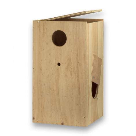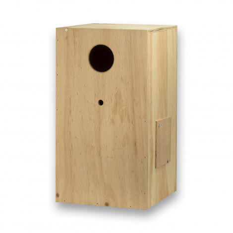 Ninho em pinho, ideal para roselas, ring necks. Com escada interior.