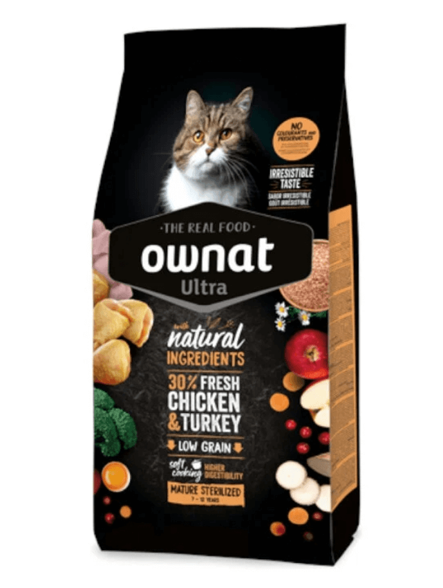 Ownat Ultra Mature Esterilizado Ração De Frango E Peru Para Gatos 3Kg