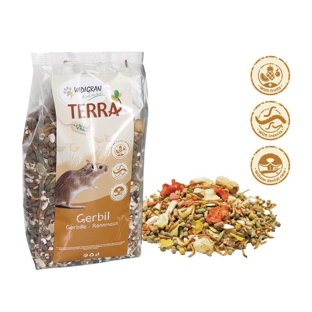 - Os insetos contidos na mistura fornecem as proteínas, minerais e energia necessárias aos gerbos.