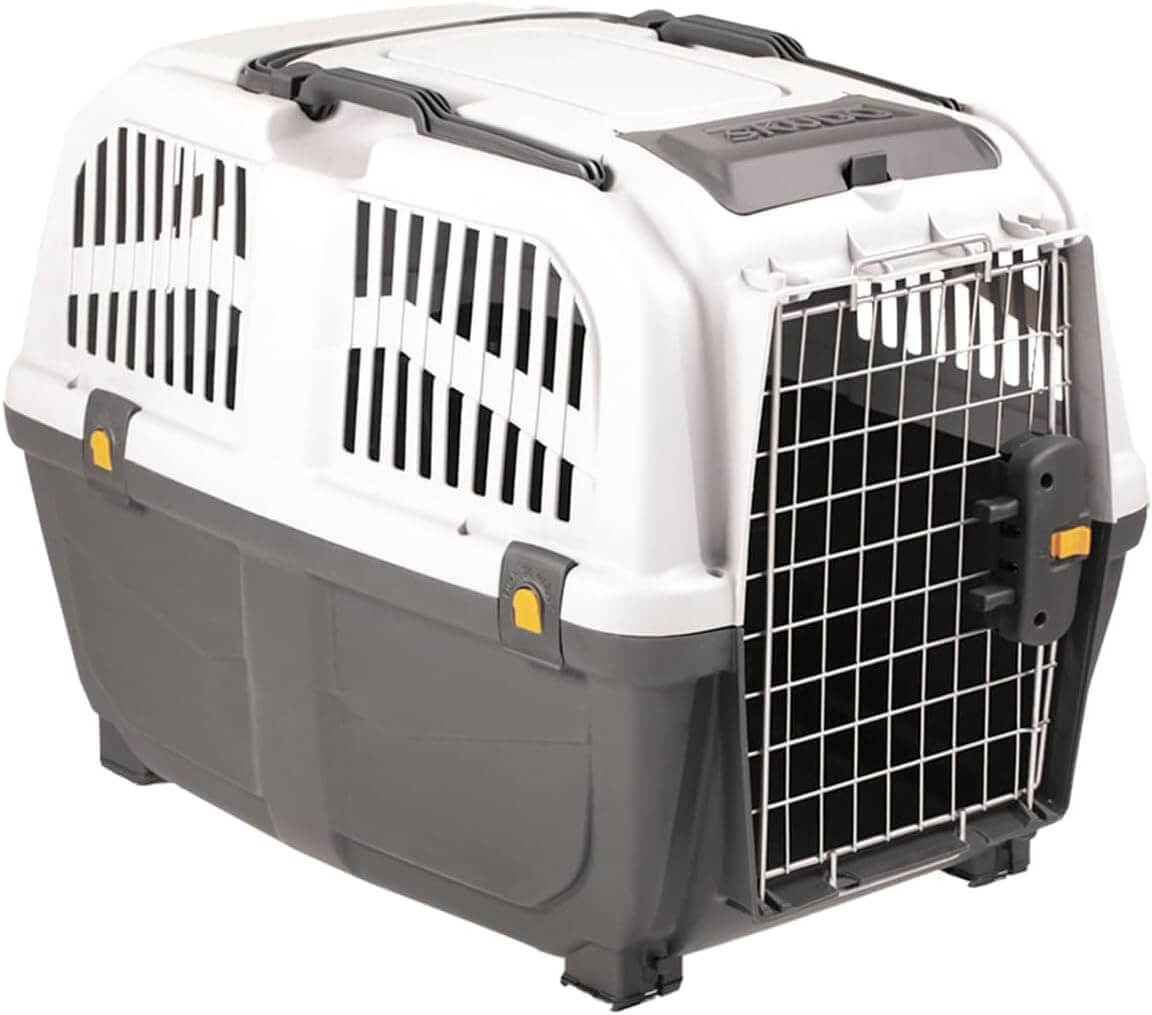 Esta caixa de transporte é ideal para viagens aéreas e atende aos requisitos. Para uma viagem sem complicações com seu animal de estimação, o kit de voo opcional é recomendado. A caixa é acessível à maioria das companhias aéreas e possui fechos de pressão com trava e uma porta de metal com trava de segurança para maior segurança.